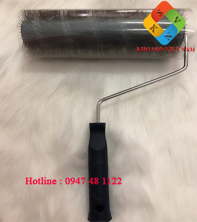 RULO GAI SẮT PHÁ BỌT KHÍ Với đặc trưng là thiết kế bánh răng có đầu săt nhọn lăn phá khí kim trong sơn epoxy, Pu tự phẳng trong quá trình thi công giúp phá bọt khí dễ dàng, tránh để lại lỗi trên bề mặt khi khô, tán điều tạo độ đồng nhất trên bề mặt hoàng thiện. Bước thi công này rất quan trọng và đòi hỏi người thợ phải thao tác đều tay để lớp sơn nhẳn mịn phá đi các khuyết điểm hợp chất được phủ đều trên bề mặt, giúp lớp sơn liên kết chặt chẽ với nhau, tạo độ bền và bóng mượt cho công trình.